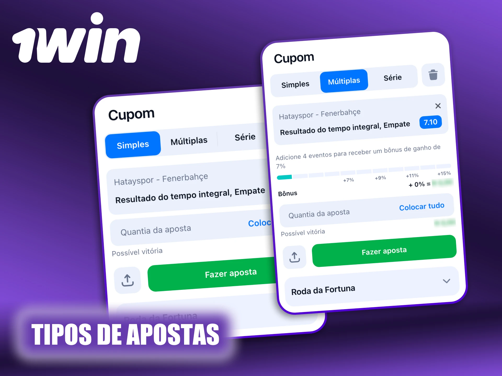 Pode escolher entre diferentes tipos de apostas para corresponder à sua forma de jogar. Cada opção dá-lhe uma forma única de planear as suas apostas e ganhar com base nas suas previsões. Aqui estão os principais tipos que pode utilizar: