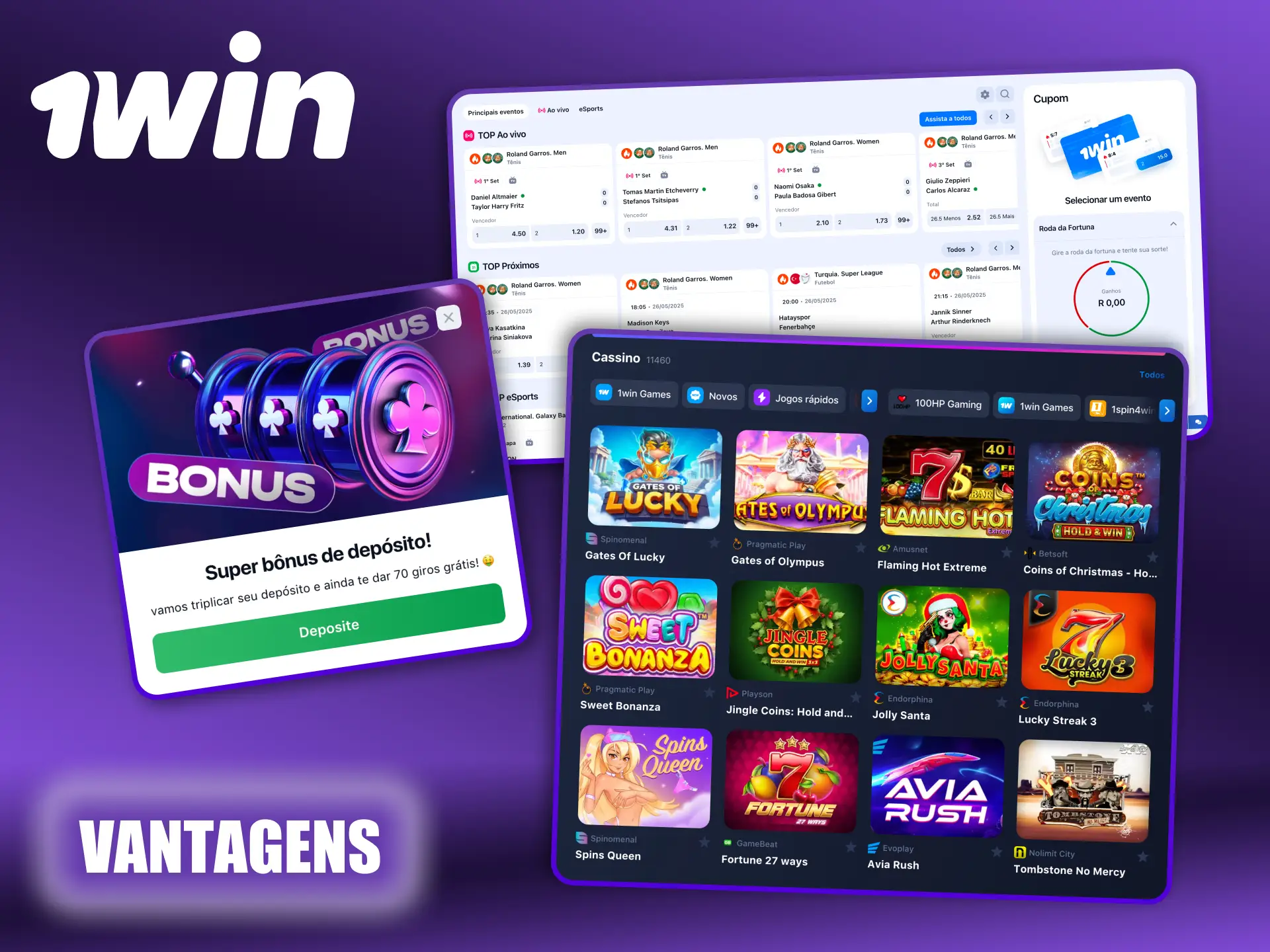 A 1Win é uma plataforma online onde você pode fazer apostas desportivas e jogar mais de 13,000 jogos de cassino de forma segura.